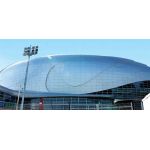 板面效果比常見的通過分割焊接生產(chǎn)的雙曲板平整度好,安裝效果比所謂的以直帶曲等假雙曲的弧線圓滑,充分展示了雙曲面鋁單板在金屬幕墻上無可替代的獨特魅力。